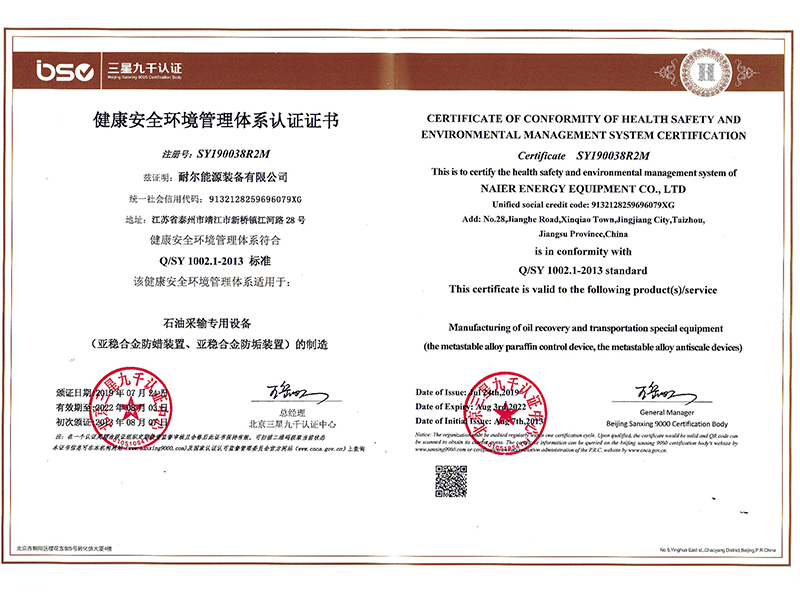 健康安全環境管理體系認證證書
